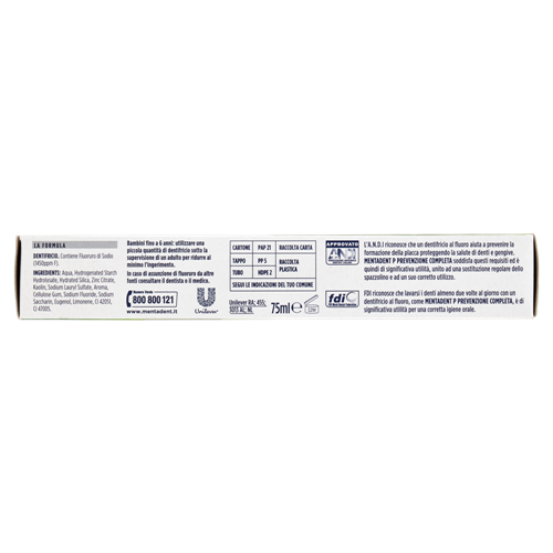 Tipo di Materiale: 21 - Paperboard Scatola; 5 - PP Tappo; 2 - HDPE Tubetto;