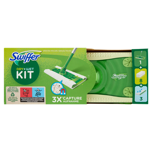 SWIFFER DRY-SK 8 PANNI +3WET Swiffer Scopa + 8 Panni Cattura Polvere Dry + 3 Panni Lavapavimenti Wet