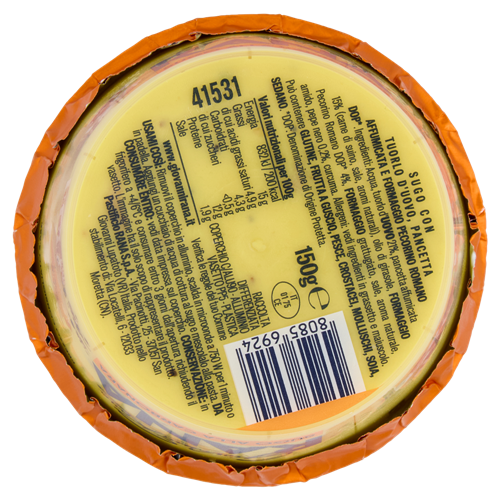 Sugo con tuorlo d'uovo, pancetta affumicata e Formaggio Pecorino Romano DOP*